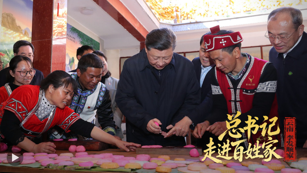 2020年春節(jié)前夕,習(xí)近平總書記走進(jìn)云南騰沖市清水鄉(xiāng)三家村中寨司莫拉佤族村,同村民李發(fā)順一家制作當(dāng)?shù)毓?jié)日傳統(tǒng)食品大米粑粑??倳浺贿B做了兩個,笑著說:“摁了個福字,再來一個喜字,有福有喜?!?/p>