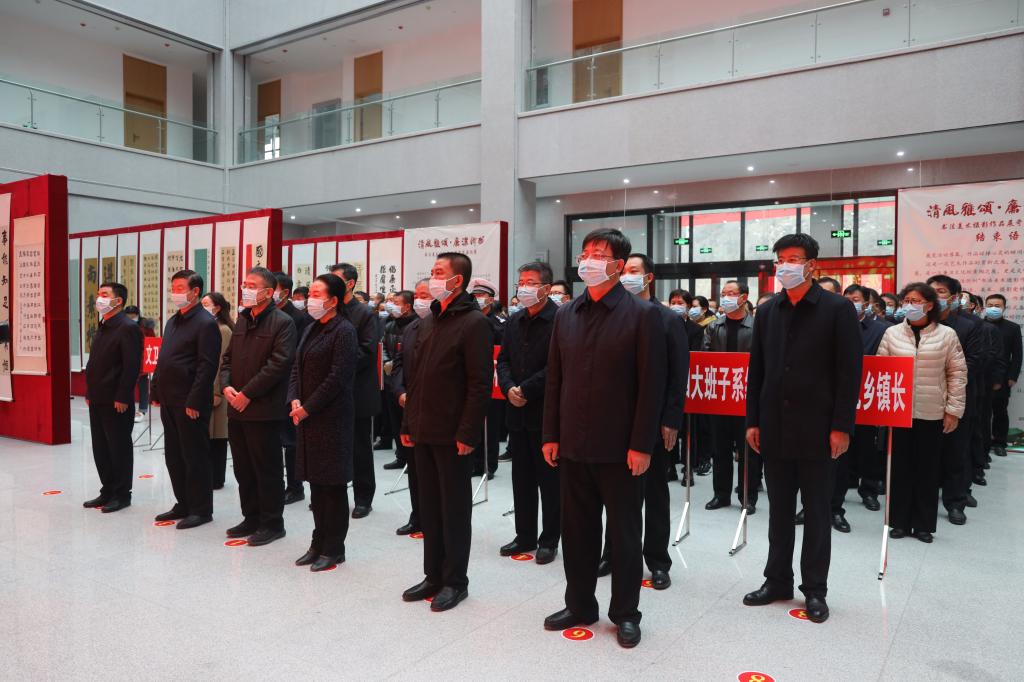 11月17日上午,忻州市紀委監(jiān)委主辦的“清風雅頌·廉潔忻州”書法美術攝影作品展岢嵐縣專場在岢嵐縣總工會新樓一樓大廳舉行開展儀式??h四大班子領導和其他縣處級領導、各鄉(xiāng)鎮(zhèn)、縣直各單位主要負責同志共計150余人參加了開展儀式。