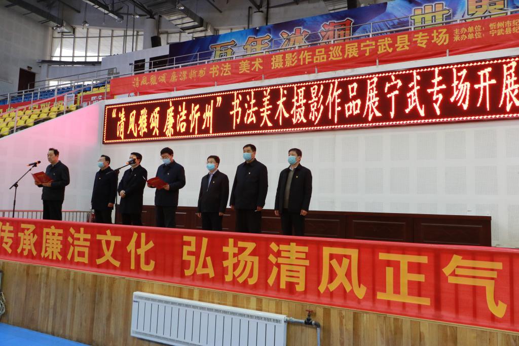 筆墨書廉潔,丹青揚正氣。11月27日,由忻州市紀委監(jiān)委主辦、寧武縣紀委監(jiān)委承辦的“清風(fēng)雅頌·廉潔忻州”書法美術(shù)攝影作品巡展寧武縣專場在縣體育館隆重開展。寧武縣委書記任寧虎在開展儀式上講話并宣布開展??h委常委、縣紀委書記、監(jiān)委主任尹志剛主持開展儀式。縣四套班子領(lǐng)導(dǎo)和其他縣處級領(lǐng)導(dǎo),各縣直單位、各鄉(xiāng)(鎮(zhèn))的主要領(lǐng)導(dǎo),全縣紀檢監(jiān)察干部,共計180余人參加儀式。