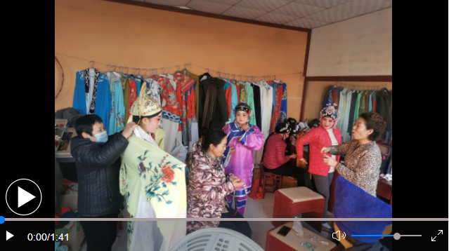 戴上胡子、穿上狀元袍、蹬上靴子、圍上披風……山東省濟南市章丘區(qū)文祖街道青野村戲臺旁邊的化裝間里,村民們正在化裝。過一會兒,她們將會變成老生、花旦,為十里八村的村民們奉獻一場五音戲表演。