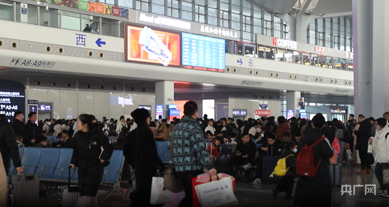 春運(yùn)期間南站候車廳里人頭攢動(央廣網(wǎng)記者 郎麒 攝)