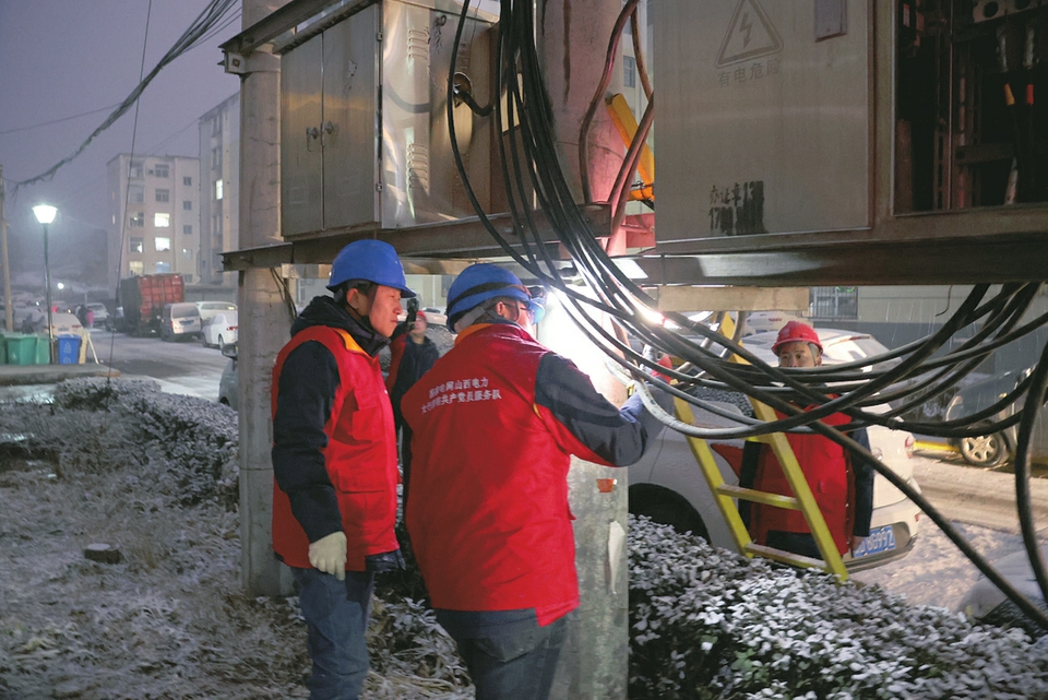 1月26日,國網(wǎng)山西電力(長治沁縣)太行黎明共產(chǎn)黨員服務(wù)隊工作人員正對供電線路和設(shè)備進行巡檢。張高峰 張玉林攝