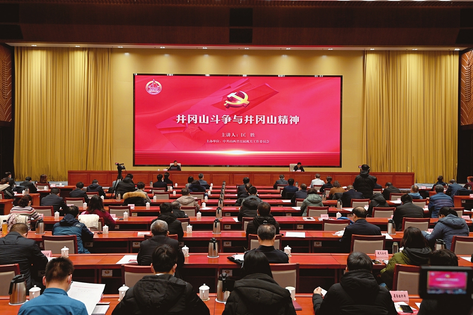 報(bào)告會(huì)以井岡山斗爭(zhēng)與井岡山精神為主題,邀請(qǐng)中國井岡山干部學(xué)院副院長、教授匡勝從中國革命的起源發(fā)展、革命道路的尋求探索、井岡山道路的抉擇歷程、井岡山精神的傳承發(fā)揚(yáng)四個(gè)方面,全面、系統(tǒng)、深刻地闡釋了井岡山斗爭(zhēng)蘊(yùn)含的偉大實(shí)踐、偉大抉擇和偉大精神。
