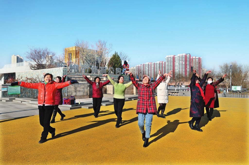 11月24日,舞蹈愛好者們在市體育公園廣場上翩翩起舞。近年來,全民健身理念在我市深入人心,越來越多的市民從體育運動的旁觀者變身參與者。 (