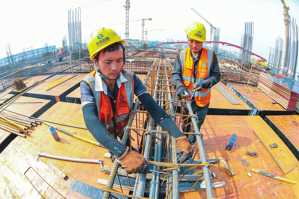 10月1日,建筑工人正在運(yùn)城市會展中心項(xiàng)目建設(shè)工地做基礎(chǔ)施工。國慶長假期間,承建總建筑面積82萬平方米會展中心項(xiàng)目的運(yùn)城市建工集團(tuán)200余名建筑工人,堅(jiān)守施工一線,嚴(yán)格按照時(shí)間表、路線圖,采取人休機(jī)不停的晝夜輪班制施工,確保重點(diǎn)項(xiàng)目的有序推進(jìn)。(姜樺攝)