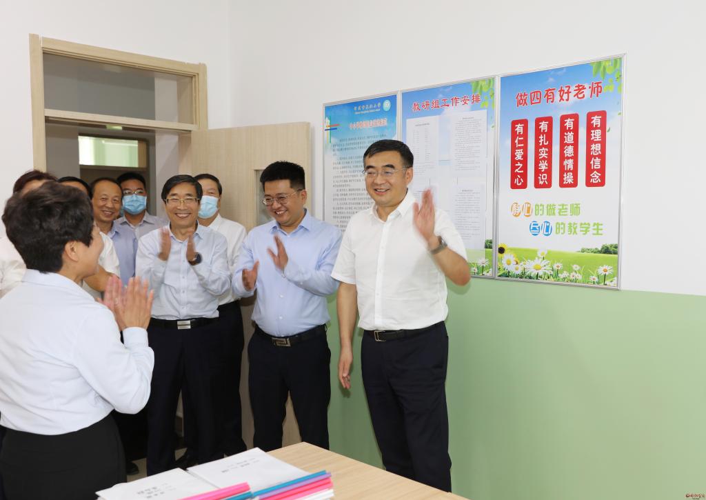 李建國(guó)詳細(xì)了解各學(xué)校的硬件設(shè)施和教師隊(duì)伍情況,察看學(xué)校開(kāi)設(shè)的勞動(dòng)技能等特色課程,并與優(yōu)秀教師代表和中小學(xué)校長(zhǎng)、幼兒園園長(zhǎng)座談,聽(tīng)取推進(jìn)全市教育事業(yè)發(fā)展的意見(jiàn)建議。