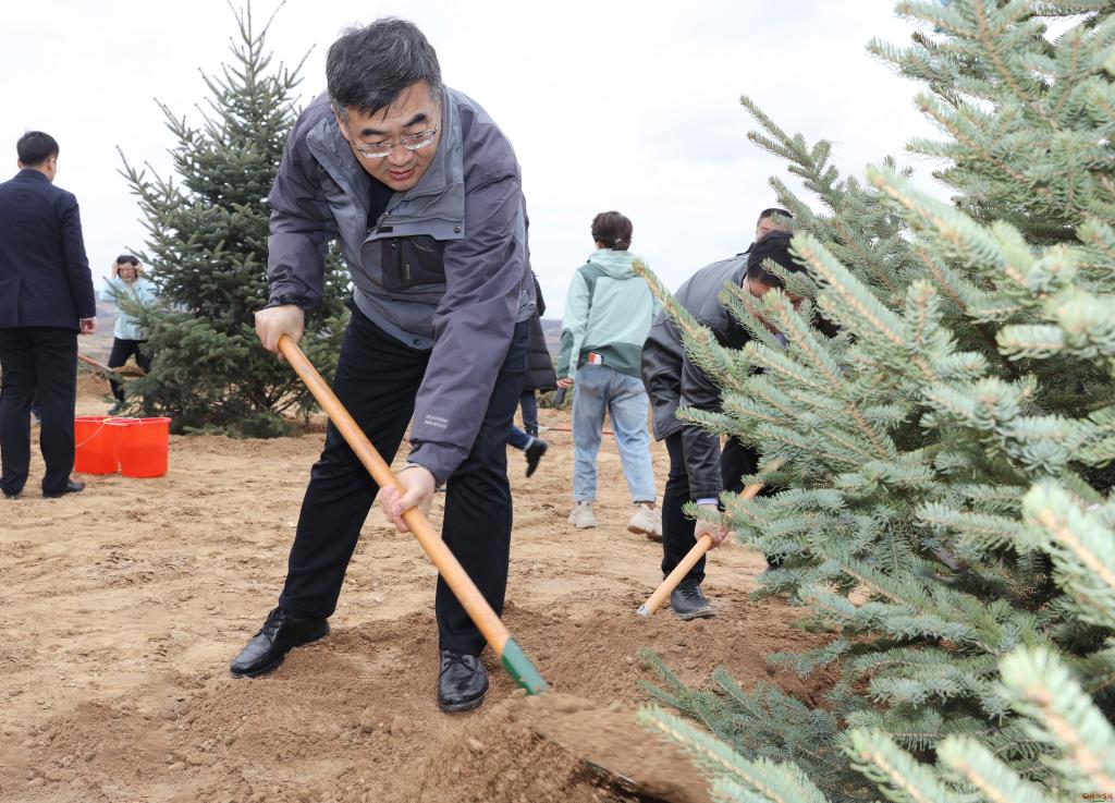 朱曉東指出,國(guó)土綠化,功在當(dāng)代、利在千秋。開(kāi)展大規(guī)模國(guó)土綠化行動(dòng),是貫徹落實(shí)習(xí)近平生態(tài)文明思想的重要實(shí)踐,是忻州牢記領(lǐng)袖囑托、保護(hù)黃河安瀾、筑牢環(huán)京津冀生態(tài)屏障的重要抓手。全市上下要把抓好生態(tài)文明建設(shè)作為堅(jiān)決捍衛(wèi)“兩個(gè)確立”的具體行動(dòng),增強(qiáng)“四個(gè)意識(shí)”、堅(jiān)定“四個(gè)自信”、做到“兩個(gè)維護(hù)”,站在筑牢國(guó)家生態(tài)安全屏障的戰(zhàn)略高度,站在實(shí)現(xiàn)忻州高質(zhì)量永續(xù)發(fā)展的高度,深刻認(rèn)識(shí)開(kāi)展國(guó)土綠化行動(dòng)和全民義務(wù)植樹(shù)的極端重要性,堅(jiān)決落實(shí)好市委、市政府的部署安排。朱曉東說(shuō),忻州作為黃河入晉第一市,作為汾河、桑干河、滹沱河“三河之源”,作為華北平原西部生態(tài)屏障,扛牢生態(tài)建設(shè)使命,必須謀在先干得實(shí)。要牢固樹(shù)立生態(tài)文明觀,準(zhǔn)確把握生態(tài)與經(jīng)濟(jì)、生態(tài)與社會(huì)、全局與局部、當(dāng)前與長(zhǎng)遠(yuǎn)的關(guān)系,嚴(yán)格落實(shí)忻州“兩屏三區(qū)三帶”建設(shè)規(guī)劃,統(tǒng)籌山水林田湖草沙綜合治理,精準(zhǔn)謀劃、精細(xì)布局,堅(jiān)持造管并重、造改并行、造封結(jié)合,確保在遵循規(guī)律的基礎(chǔ)上因地制宜,不斷擴(kuò)大林地面積,不斷提高森林質(zhì)量,持續(xù)提升生態(tài)系統(tǒng)穩(wěn)定性,努力探索出務(wù)實(shí)管用的忻州綠化路徑。要圍繞國(guó)家重點(diǎn)區(qū)域重大生態(tài)修復(fù)和保護(hù)工程“雙重”項(xiàng)目、省級(jí)黃河流域生態(tài)防護(hù)林屏障、環(huán)京津冀生態(tài)安全屏障等造林綠化重點(diǎn)工程,積極爭(zhēng)取更多項(xiàng)目落地忻州。偏關(guān)、河曲、保德、五寨4縣要統(tǒng)籌造林綠化和荒漠化治理,科學(xué)精準(zhǔn)推進(jìn)人造林、退化林修復(fù)、100個(gè)重點(diǎn)村莊高標(biāo)準(zhǔn)綠化美化等項(xiàng)目實(shí)施,著力打造集晉西北整流域綜合治理、片帶狀生態(tài)防護(hù)、節(jié)點(diǎn)景觀綠化為一體的荒漠化典型示范工程,為黃河流域生態(tài)保護(hù)修復(fù)提供可復(fù)制可借鑒的經(jīng)驗(yàn)。要深化全民履“植”,繼續(xù)深化全民植樹(shù)成效,創(chuàng)新義務(wù)植樹(shù)形式,提高公民義務(wù)植樹(shù)參與率,讓愛(ài)綠植綠護(hù)綠成為群眾的自覺(jué)追求,讓綠水青山成為忻州的“幸??可健?。要完善管護(hù)體系,把營(yíng)造林?jǐn)?shù)量、質(zhì)量“雙增”的目標(biāo)擺在首位,創(chuàng)新管護(hù)方式,全面落實(shí)林長(zhǎng)制,做好森林防火工作,加大對(duì)亂砍濫伐、非法開(kāi)墾等破壞造林綠化成果違法行為的處置力度,真正管在實(shí)處、管在關(guān)鍵。朱曉東強(qiáng)調(diào),做好國(guó)土綠化工作關(guān)鍵在落實(shí)。市發(fā)改、財(cái)政、自然資源(林業(yè))、住建、交通運(yùn)輸、農(nóng)業(yè)、水利等主要職能部門(mén),要各司其職、密切配合,協(xié)同推進(jìn)城市、礦山、道路、村鎮(zhèn)、水域、山地等國(guó)土綠化工作。各縣(市、區(qū))一把手要親自抓、重點(diǎn)抓、具體抓,樹(shù)立正確的政績(jī)觀,主政一方、造福一方,為當(dāng)?shù)刈訉O后代建好水庫(kù)、錢(qián)庫(kù)、糧庫(kù)、碳庫(kù)。要開(kāi)展身邊增綠、城鄉(xiāng)增景行動(dòng),既增大“綠”,也抓小“綠”、微“綠”,既造底色,也造景色、美色,真正把國(guó)土綠化同高質(zhì)量發(fā)展大局結(jié)合起來(lái),為美麗忻州、品質(zhì)忻州、幸福忻州貢獻(xiàn)更多力量。