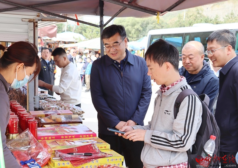 在景區(qū)游客服務(wù)中心,李建國詳細(xì)了解中心的游客接待能力、停車服務(wù)容量以及游客購票進(jìn)山流程,隨機(jī)詢問游客旅游體驗(yàn)以及對于旅游產(chǎn)品和服務(wù)質(zhì)量的意見建議,祝愿在忻游玩愉悅。隨后,李建國來到景區(qū)核心區(qū),了解各景點(diǎn)消防安全、應(yīng)急措施、環(huán)境保護(hù)及攤位商品的價格公示等情況。