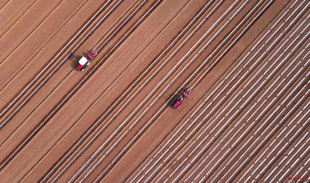4月21日,在忻州民宇農(nóng)業(yè)甜糯玉米標(biāo)準(zhǔn)化種植基地,兩臺(tái)玉米膜側(cè)播種機(jī)聯(lián)合作業(yè),搶農(nóng)時(shí)進(jìn)行播種。近年來(lái),該基地采用玉米膜側(cè)播種綜合栽培技術(shù)進(jìn)行播種,有效解決了高溫導(dǎo)致玉米早衰等問(wèn)題,提高了降水利用率,增加了玉米產(chǎn)量。 (張存良攝
