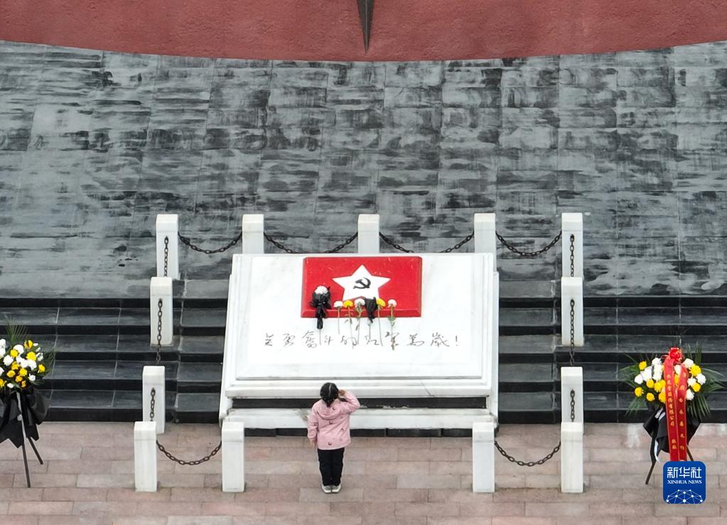 4月4日,在貴州省赤水市紅軍烈士陵園,赤水一中師生祭奠紅軍烈士。