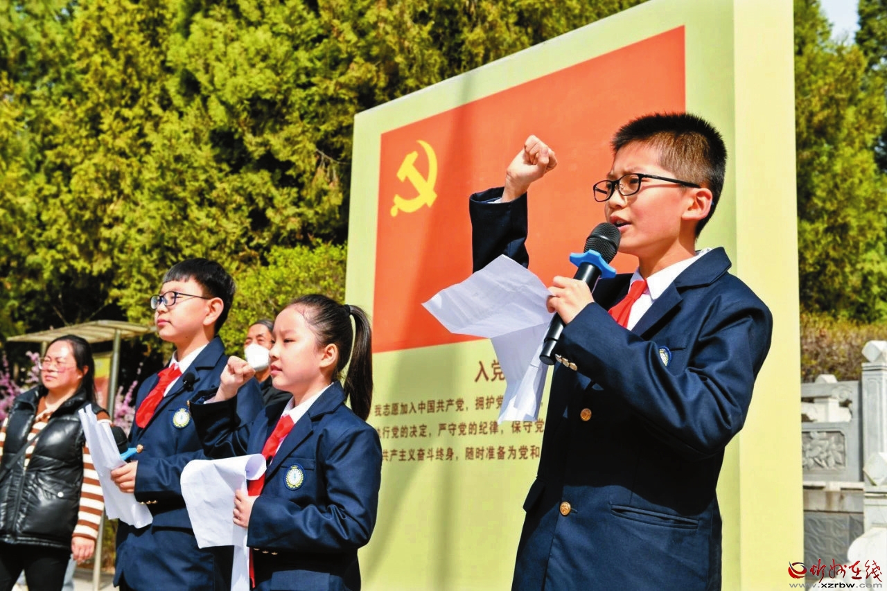 在西河頭地道戰(zhàn)紀(jì)念館英雄紀(jì)念碑前,大家聆聽(tīng)革命先烈故事,向烈士紀(jì)念碑敬獻(xiàn)花圈,寄托對(duì)革命先烈的無(wú)限哀思和敬仰之情。 本報(bào)通訊員攝
