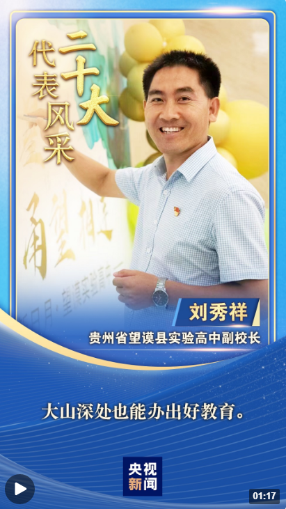 “二十大代表風(fēng)采”一起來認識貴州省黔西南州望謨縣實驗高中副校長劉秀祥。