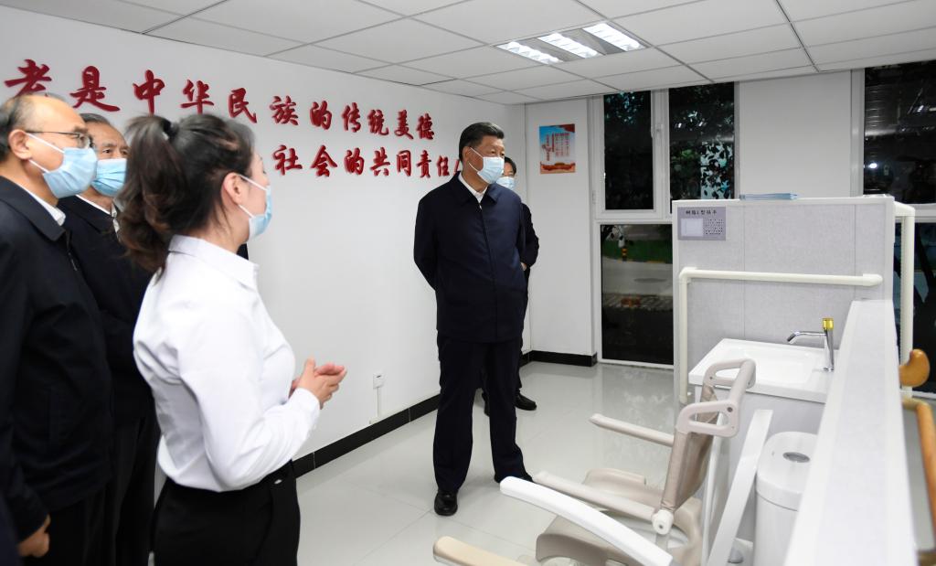 2021年8月24日,習(xí)近平總書(shū)記在河北省承德市濱河社區(qū)居家養(yǎng)老服務(wù)中心察看適老化改造等項(xiàng)目。新華社記者 李學(xué)仁 攝
