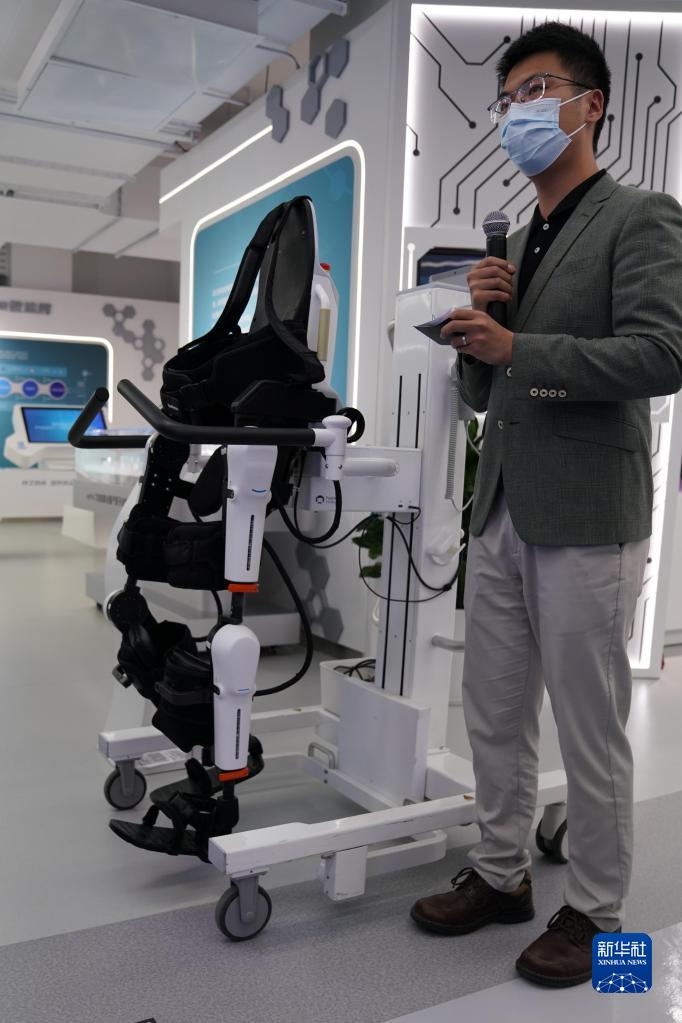 5月11日,在上海城市數(shù)字化轉(zhuǎn)型體驗(yàn)館“解碼生命”區(qū)域,工作人員介紹一款下肢康復(fù)機(jī)器人。新華社記者 馬寧 攝 “它每邁出的一小步,背后都是一臺臺高性能的傳感器、控制器、電機(jī)配合強(qiáng)大的算法在高速運(yùn)轉(zhuǎn)?!鄙虾8道~智能科技有限公司產(chǎn)品經(jīng)理高崇力介紹說,目前這款產(chǎn)品已在多家醫(yī)療機(jī)構(gòu)得到應(yīng)用,輔助中風(fēng)等患者進(jìn)行康復(fù)。 上海市經(jīng)信委信息化推進(jìn)處副處長陳斐斐表示,上海城市數(shù)字化轉(zhuǎn)型體驗(yàn)館不僅是展示上海數(shù)字化轉(zhuǎn)型的窗口,還是一個創(chuàng)新平臺,通過“展、賽、創(chuàng)”,吸引更多優(yōu)質(zhì)項目,助力初創(chuàng)企業(yè)孵化成為高成長性企業(yè),讓體驗(yàn)館常展常新、產(chǎn)業(yè)生態(tài)持續(xù)優(yōu)化。