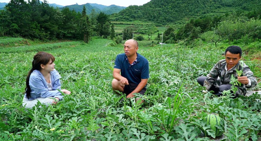 圖為貴陽市烏當區(qū)新堡鄉(xiāng)新堡村一農場負責人林正福查看西瓜生長情況。(韋登亮 攝)