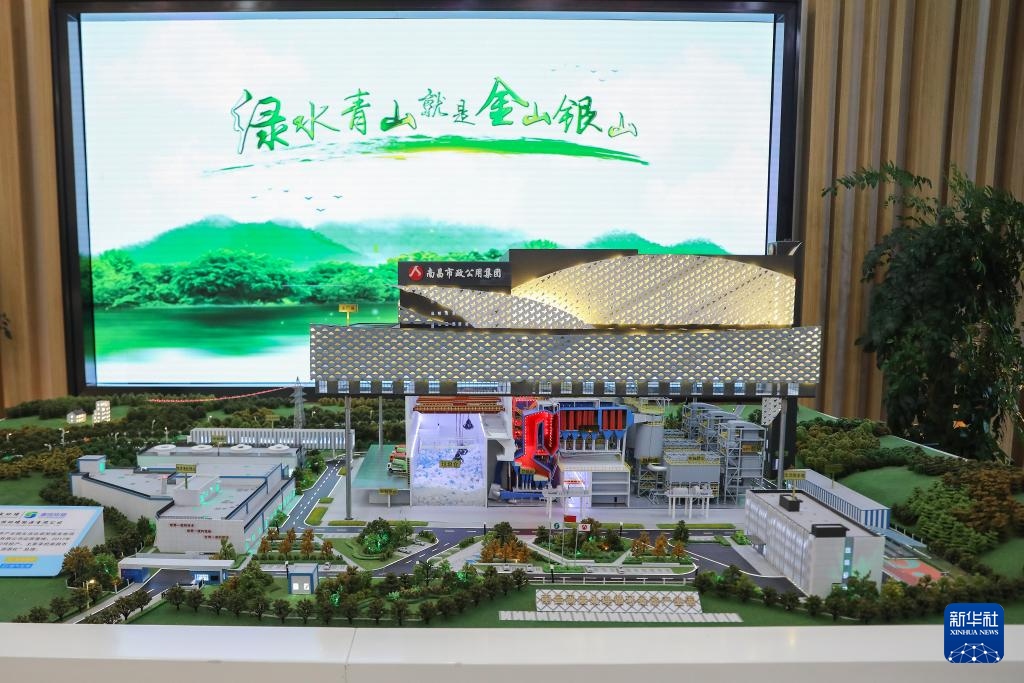 6月29日在江西南昌固廢處理循環(huán)經濟產業(yè)園拍攝的介紹生活垃圾焚燒發(fā)電項目的模型。新華社記者 杜瀟逸 攝