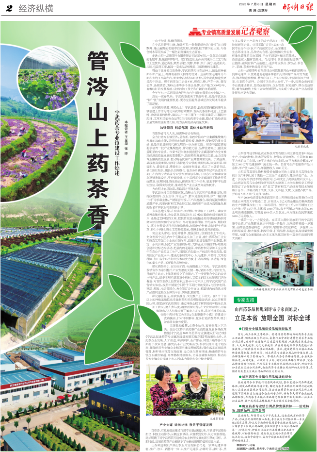 自市委、市政府提出建設(shè)市級(jí)專業(yè)鎮(zhèn)戰(zhàn)略以來,寧武縣牢記使命擔(dān)當(dāng),積極主動(dòng)作為,從概念到調(diào)研,從雛形到發(fā)布,從方案到落地,逐步明確了將寧武藥茶打造成為農(nóng)業(yè)轉(zhuǎn)型發(fā)展的新引擎的目標(biāo)。從那時(shí)起,縣域的藥茶產(chǎn)業(yè)被賦予了全新的使用價(jià)值和商業(yè)內(nèi)涵。