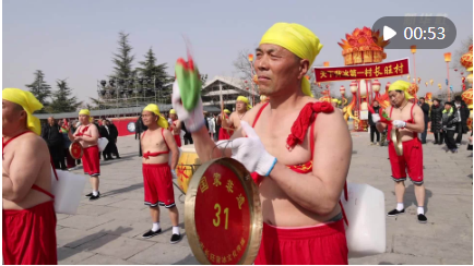 新春佳節(jié),在山西省永濟(jì)市鸛雀樓景區(qū),民間藝人們表演社火“背冰”,受到游客的熱烈歡迎。只見在凜冽的寒風(fēng)中,二十多名黃河漢子冒著零度左右的氣溫,身著短褲赤膊上陣,背著從黃河里撈起的大冰塊,在鑼鼓伴奏下列隊(duì)前行,展示了黃河漢子彪悍勇敢、不畏艱難困苦的鐵骨精神,寄托了勞動(dòng)人民祛邪、避災(zāi)、祈福的美好愿景。