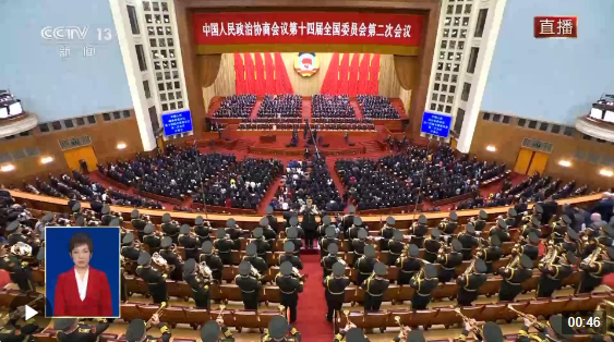 獨(dú)家視頻丨全國政協(xié)十四屆二次會(huì)議開幕 全場高唱國歌
