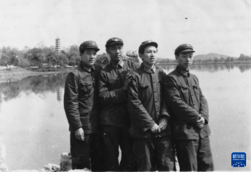 1962年,王小謨(左二)參軍分配后和戰(zhàn)友合影(資料照片)。新華社發(fā)(中國電子科技集團有限公司電子科學研究院供圖)