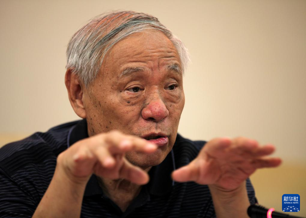 王小謨在位于北京的電子科學研究院回答媒體提問(2013年7月18日攝)。新華社記者 金立旺 攝
