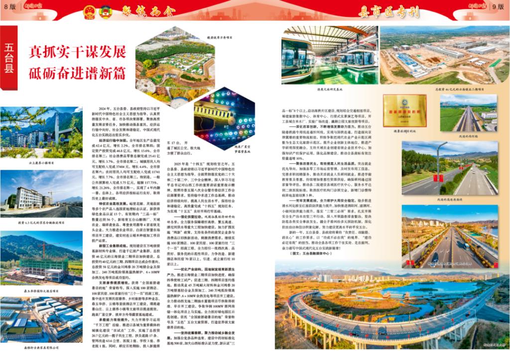 承載能力有效提升。大力開(kāi)展學(xué)習(xí)運(yùn)用“千萬(wàn)工程”經(jīng)驗(yàn)、推進(jìn)以縣城為重要載體的城鎮(zhèn)化建設(shè)“雙試點(diǎn)”工作,實(shí)施了總投資20.7億元的一攬子民生工程,涉及道路17條、管網(wǎng)改造63.6公里、醫(yī)院2座、學(xué)校3座、養(yǎng)老院1座。同時(shí),順應(yīng)百姓期盼,投入新能源車(chē)17臺(tái),開(kāi)通了城區(qū)公交,極大地方便了群眾出行。2025年是“十四五”規(guī)劃收官之年。五臺(tái)縣委、縣政府將以習(xí)近平新時(shí)代中國(guó)特色社會(huì)主義思想為指導(dǎo),全面貫徹落實(shí)黨的二十大和二十屆二中、三中全會(huì)精神,深入學(xué)習(xí)習(xí)近平總書(shū)記對(duì)山西工作的重要講話(huà)重要指示精神,按照市委五屆八次全會(huì)暨市委經(jīng)濟(jì)工作會(huì)議部署要求,堅(jiān)持穩(wěn)中求進(jìn)工作總基調(diào),推動(dòng)經(jīng)濟(jì)持續(xù)向好,提高人民生活水平,保持社會(huì)和諧穩(wěn)定,高質(zhì)量完成“十四五”規(guī)劃任務(wù),為實(shí)現(xiàn)“十五五”良好開(kāi)局打牢基礎(chǔ)。