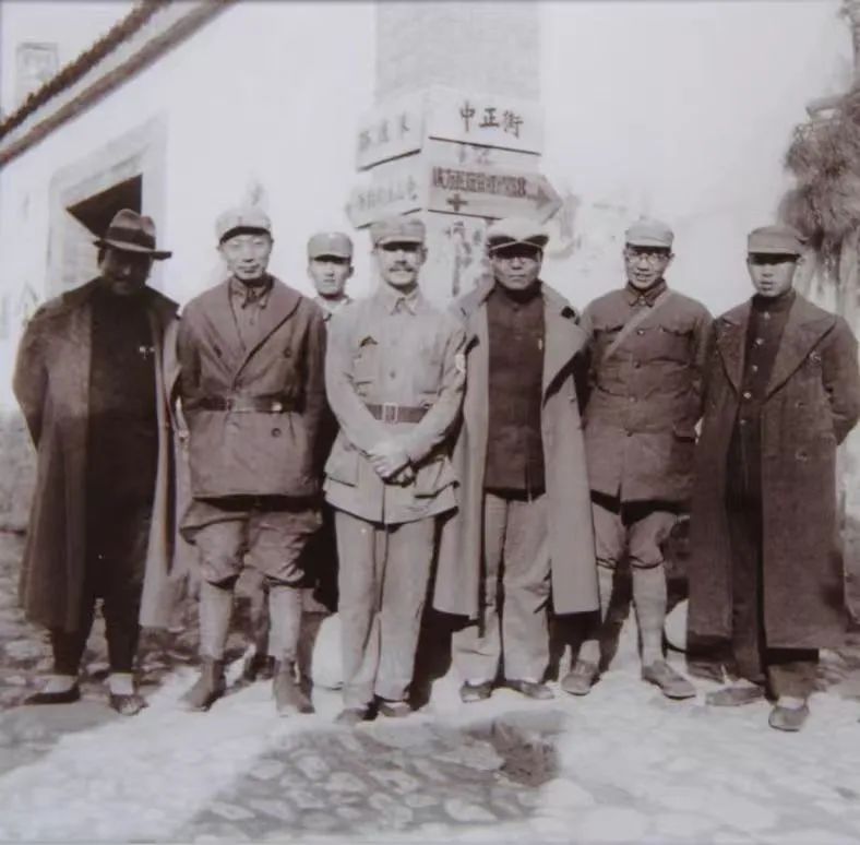 資料圖:1938年9月15日,白求恩模范病室建成典禮后,白求恩和晉察冀邊區(qū)領(lǐng)導(dǎo)在松巖口街上合影留念。左四為白求恩。