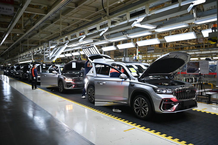 來到浙江吉利控股集團設(shè)在西安的整車生產(chǎn)基地,基于強大的數(shù)字平臺和智能化設(shè)備,這里可實現(xiàn)24小時不間斷“黑燈生產(chǎn)”,不同設(shè)備、機器人之間自主協(xié)調(diào)運作、靈活響應(yīng),沖壓、焊接、噴涂自動化率均達到100%。